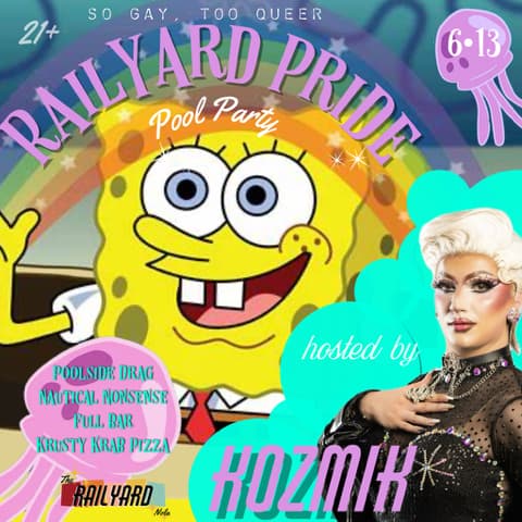 We are over the moon to be announcing our very own Pride Fest Pool Party! A day of Nautical Nonsense as Bikini Bottom comes to The Railyard! Hosted by the one and only Kween Kozmik! Expect a full line up of spongy performances, Goofy Goober sounds and stylings, bubbles, themed cocktails and more!